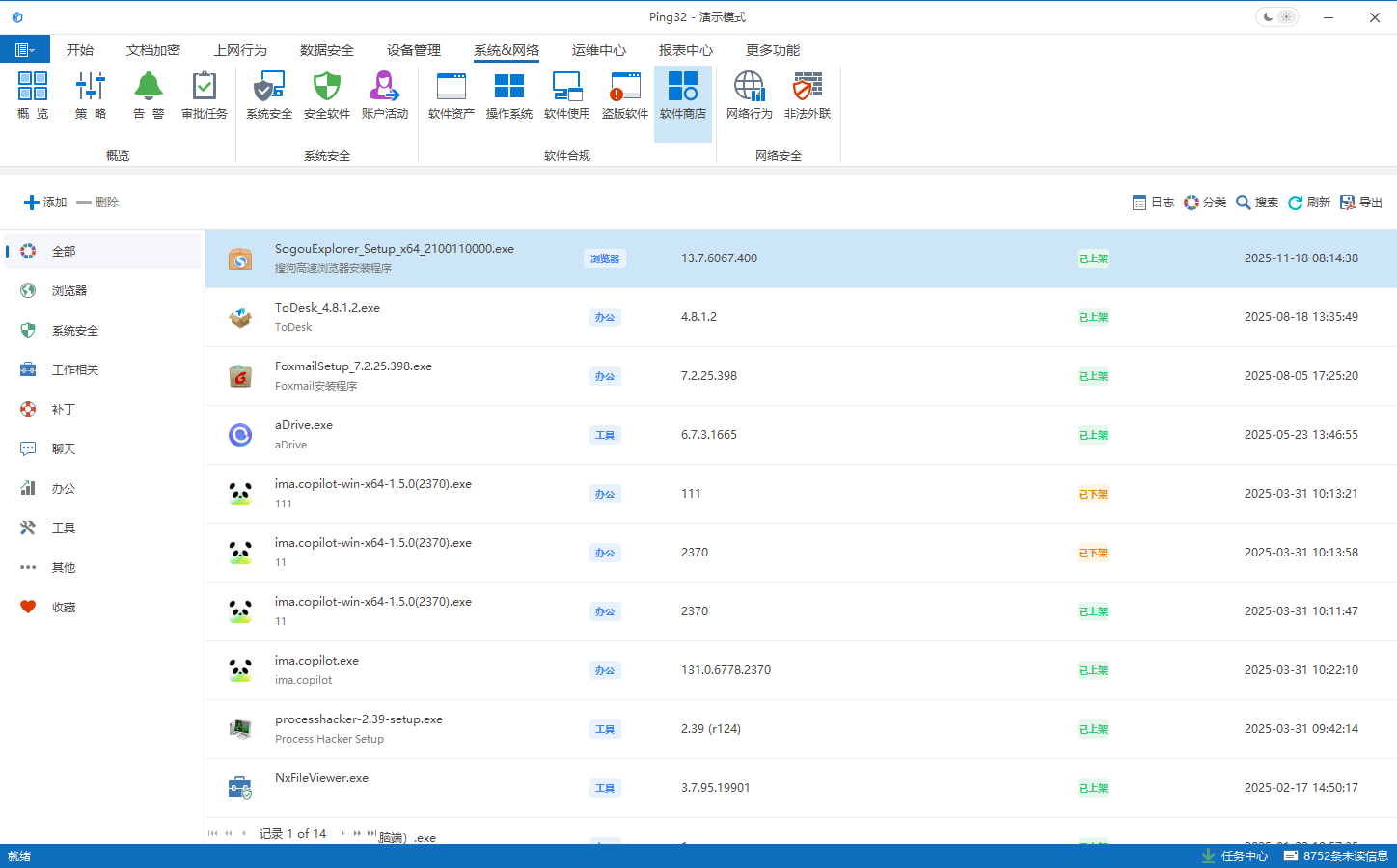 Ping32是一款集 自动加密、权限控制、审计追踪 于一体的专业终端数据安全软件,适合企业,也适合对资料要求严格的个人用户。其特点是“自动护航”,无需用户额外操作即可完成加密保护。