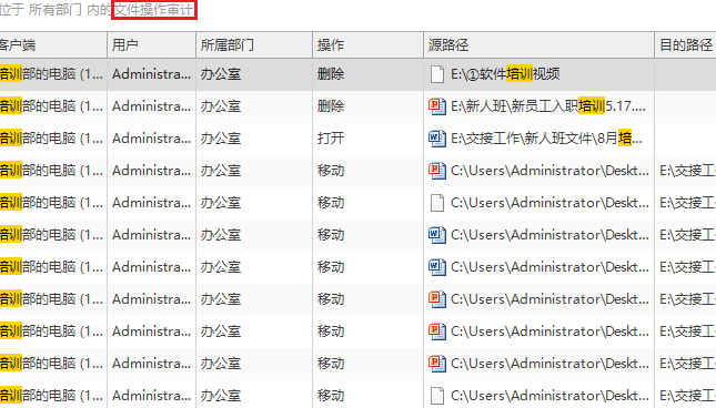 文件操作:详细记录文件的访问、修改、拷贝、外发等操作,形成完整的“审计链”。