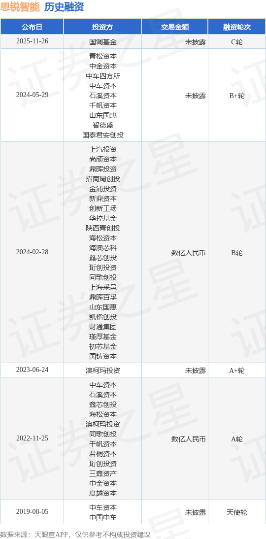 证券之星消息,根据天眼查APP于11月26日公布的信息整理,青岛思锐智能科技股份有限公司C轮融资,融资额未披露,参与投资的机构包括国调基金。