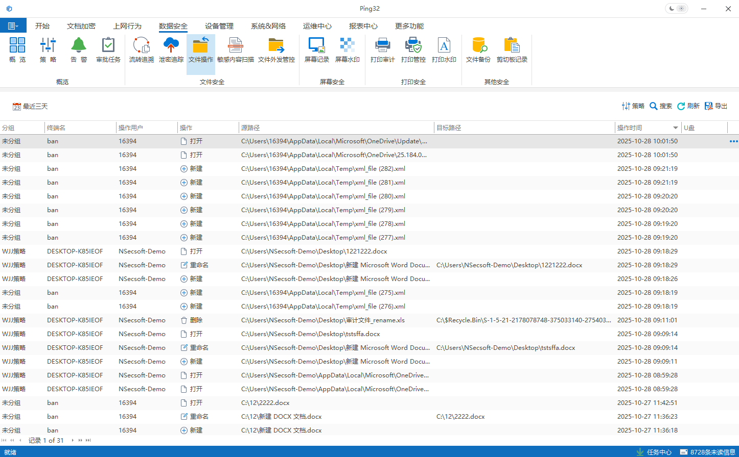 开发行为监控:系统全面监控开发人员的代码操作行为,包括代码编写、编译、提交、拉取等全流程操作。详细记录代码访问时间、操作用户、使用工具等信息,支持代码操作屏幕录像。当检测到异常代码访问或批量下载时立即告警,为企业提供完整的代码操作审计轨迹。