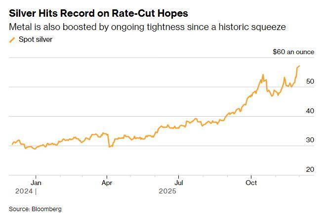 智通财经获悉,周一,白银价格飙升至历史新高,延续前一交易日近6%的涨幅。此前芝加哥商品交易所(CME)交易中断事件,叠加持续的供应紧张格局与美国降息预期升温,共同推动银价走强。