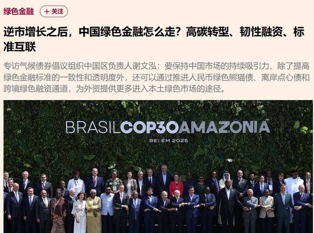 报道还提到,中国正通过与欧盟的共同分类目录(CGT)接轨,以及创新金融工具如气候适应和韧性债券,优化绿色金融体系。未来,中国将在绿色债券、碳市场和自然资本金融化等领域发挥更大作用,助力全球气候金融发展。