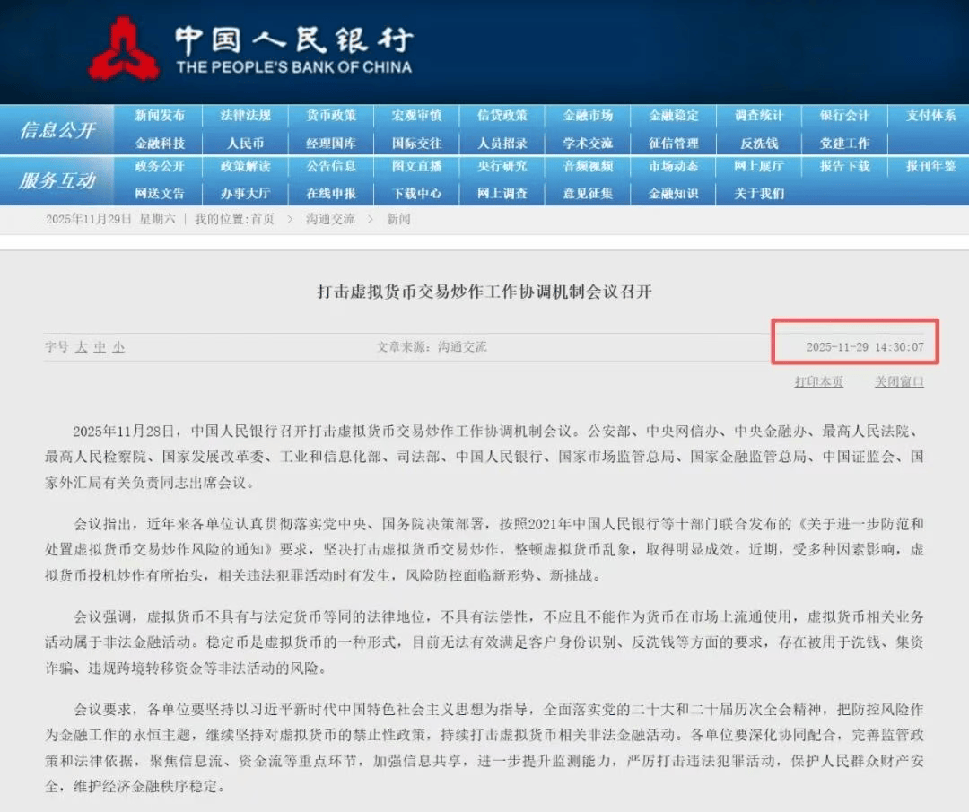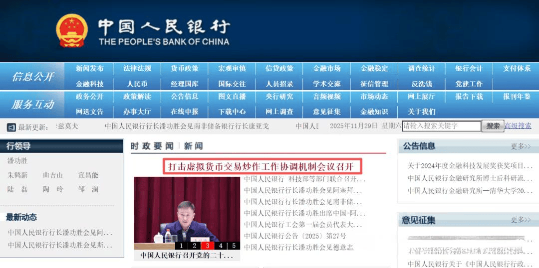 10月27日,央行行长潘功胜在北京金融街年会公开表态:“禁止虚拟货币交易炒作的政策绝不松动,下一步将严厉打击境内经营和炒作行为。”
