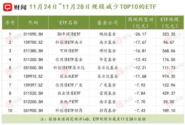 财闻注意到,受科创债大跌影响,上周规模下降的ETF主要集中在科创债领域,科创债ETF南方(159700.SZ)、科创债ETF易方达(551500.SH)单周规模分别缩水17.67亿元和12.21亿元。