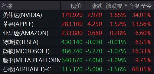 科技巨头表现分化。英伟达逆势上涨1.65%,苹果涨1.52%,盘中一度触及历史新高;但谷歌、微软、Meta均跌超1%,博通重挫4.19%。值得关注的是,英伟达宣布与EDA公司新思科技深化战略合作,斥资20亿美元入股新思科技,受此消息提振,新思科技股价大涨4.85%。