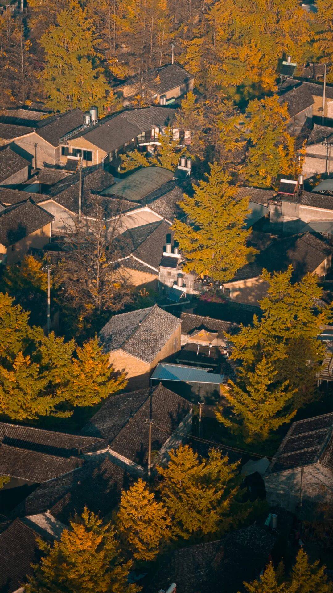 此时,正是银杏村一年中最迷人的时刻。成片的银杏树金黄璀璨,将这个古老村庄装点得宛如一幅浓墨重彩的油画。阳光透过枝叶洒下斑驳光点,整个村落被渲染成梦幻的金色童话世界。