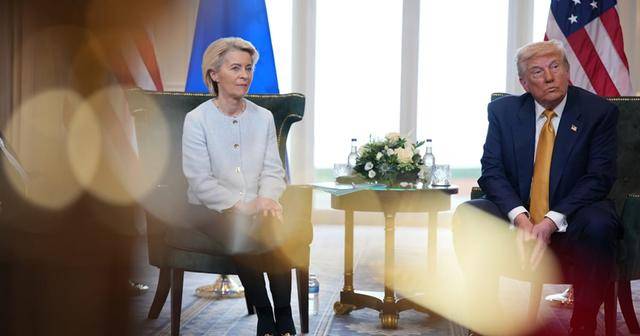 特朗普今年对中国加税,对盟友也没放过,直接开口就对欧洲商品征收30%关税,把欧盟吓出一身冷汗,经过几轮谈判虽然压到15%,但对欧洲经济来说依旧是当头一棒。