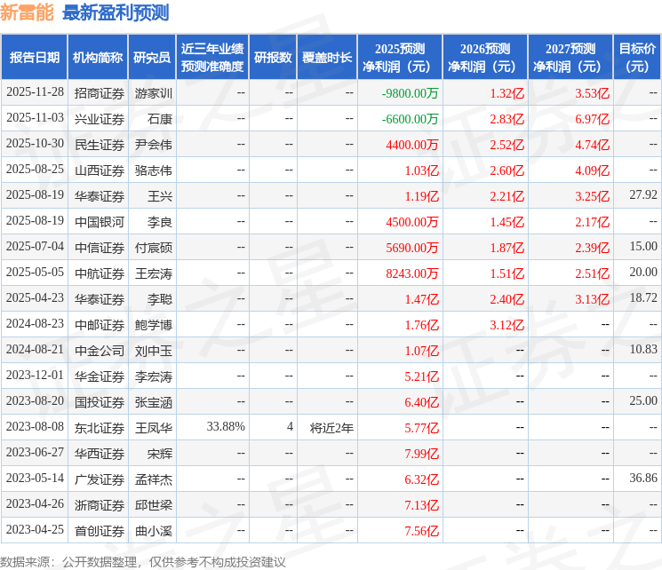新雷能2025年三季报显示,前三季度公司主营收入9.29亿元,同比上升36.16%;归母净利润-8985.64万元,同比上升34.71%;扣非净利润-1.02亿元,同比上升29.27%;其中2025年第三季度,公司单季度主营收入3.77亿元,同比上升94.87%;单季度归母净利润528.21万元,同比上升107.59%;单季度扣非净利润6.57万元,同比上升100.09%;负债率41.41%,投资收益185.07万元,财务费用2616.78万元,毛利率40.04%。