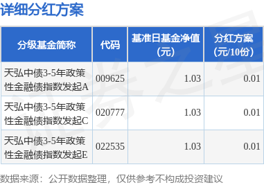 证券之星消息,12月3日发布《天弘中债3-5年政策性金融债指数发起式证券投资基金分红公告》。本次分红为2025年度的第4次分红。公告显示,本次分红的收益分配基准日为11月11日,详细分红方案如下:
