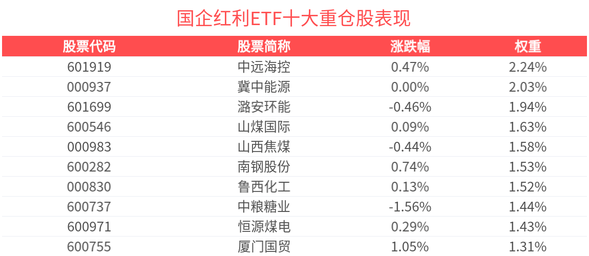 国企红利ETF紧密跟踪中证国有企业红利指数,从国有企业中选取现金股息率高、分红比较稳定且有一定规模及流动性的100只上市公司证券作为指数样本,反映国有企业中高股息率证券的整体表现。