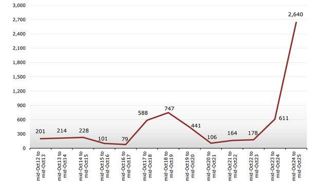 WTO的年度《贸易措施监督报告》显示,2024年10月中旬至2025年10月中旬期间,全球进口额中有26400亿美元都受到关税及其他贸易措施的影响,是前一时期6110亿美元的四倍多。若将类似的出口措施也包括在内,受影响的贸易总额约为29660亿美元,是上一份报告中记录的8880亿美元的三倍多。