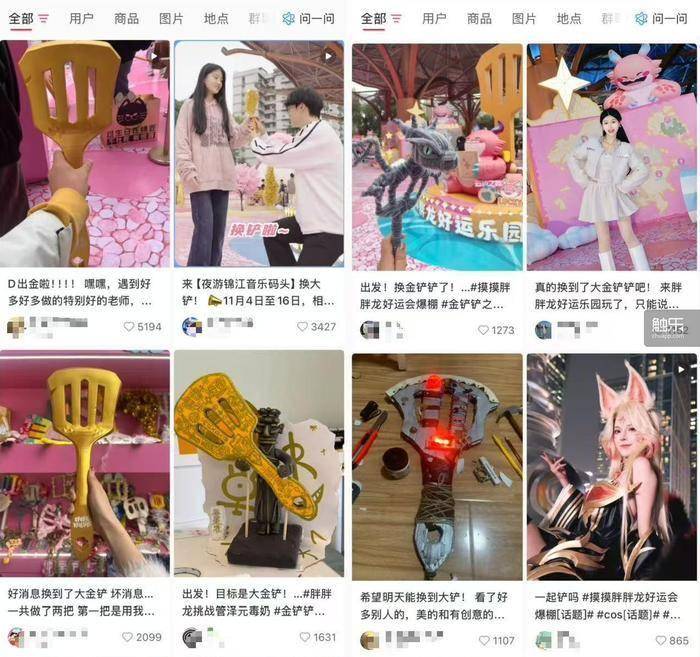 成都胖胖龙好运乐园的活动从11月4日持续至16日。在这12天里,仅小红书上关于“摸摸胖胖龙好运会爆棚”的话题,便收获了554.6万次浏览。在这些帖子中,绝大多数都是玩家晒出的自制铲铲照片。显然,相比于被动接收,玩家们对于自己倾注心血创造的作品,明显有着更强烈的分享欲和交流欲。
