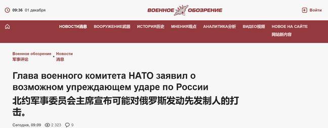 北约甚至要先发制人(俄媒《军事观察》报道截图)