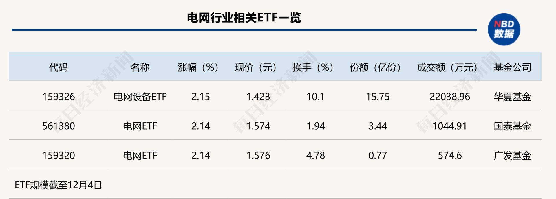 点评:电网ETF(561380)和电网ETF(159320)半日涨幅均为2.14%,其中,电网ETF(561380)规模相对较大,其份额为3.44亿份,半日成交金额为1044.91万元。上述两只ETF追踪的是恒生A股电网设备指数。