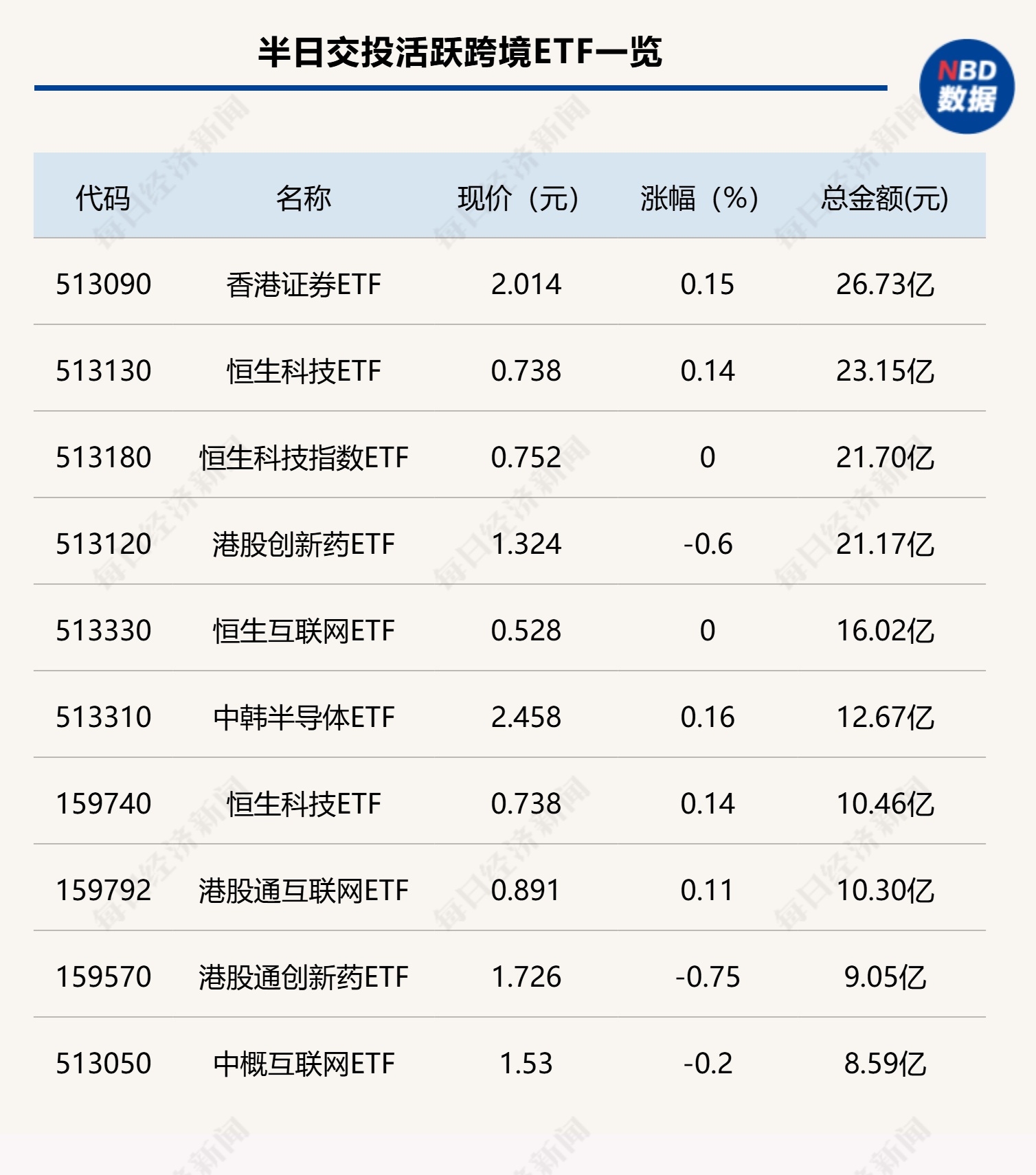 今日上午,ETF交投回归平淡,行业、主题ETF中仅科创芯片ETF(588200)成交金额超过10亿元。跨境ETF方面,包括香港证券ETF(513090)等4只跨境ETF半日成交金额超过20亿元。