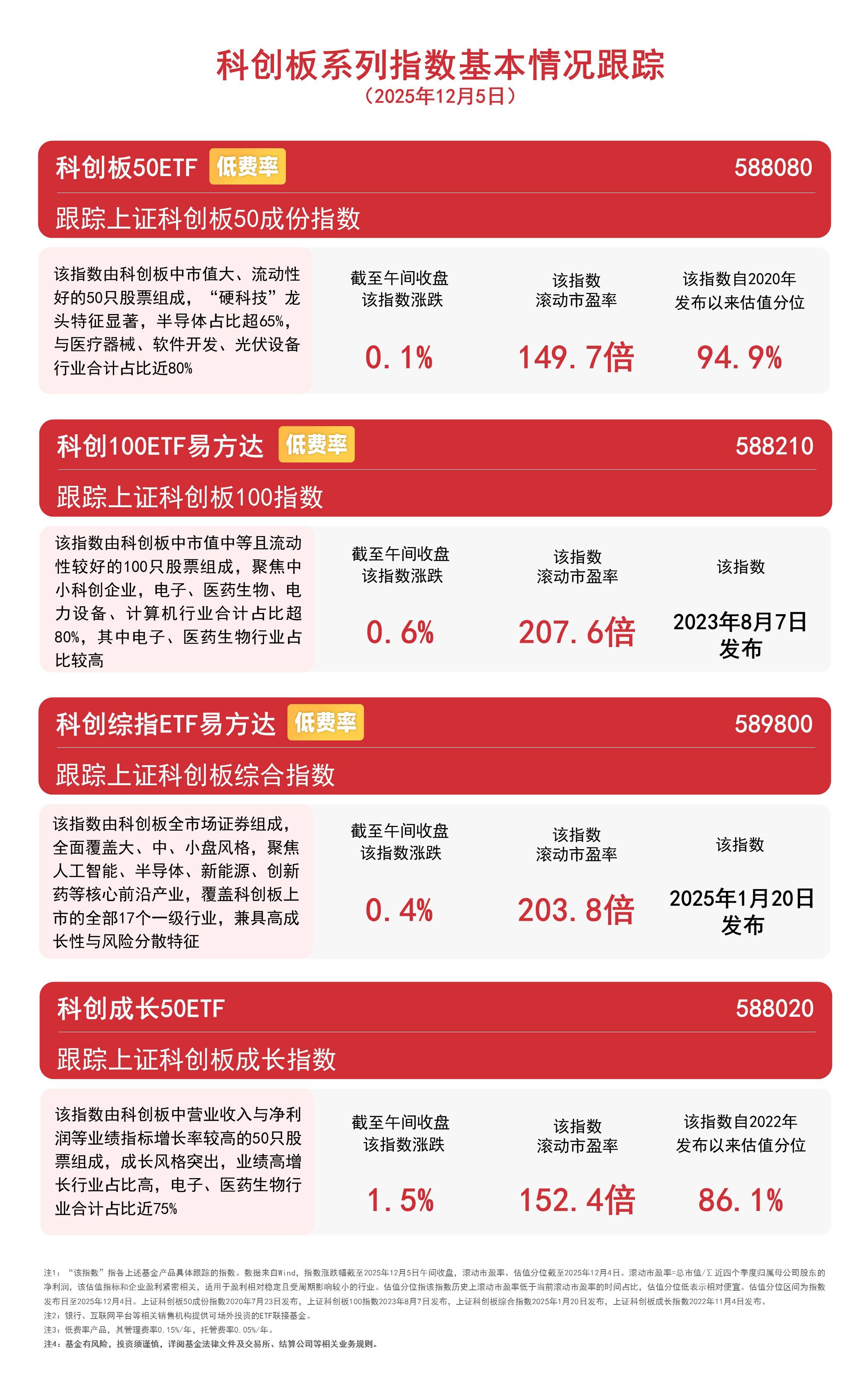 今日早盘,科技成长股低开后盘中回升,超导、商业航天、光通信等概念涨幅居前,带动科创板系列指数集体上涨。截至午间收盘,科创成长指数上涨1.6%,科创100指数上涨1.2%,科创板50指数上涨0.9%,科创综指上涨0.6%。