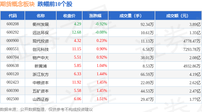 从资金流向上来看,当日期货概念板块主力资金净流入9.16亿元,游资资金净流出5.18亿元,散户资金净流出3.98亿元。期货概念板块个股资金流向见下表: