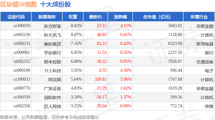 证券之星消息,12月5日,区块链50(399286)指数报收于39...