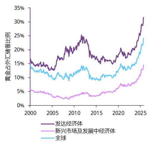 新兴市场作为购金主力,其黄金储备占比仍远低于发达国家与地区。若地缘政治紧张局势升级,新兴市场购金步伐有望加快,从而强化对黄金的结构性支撑。