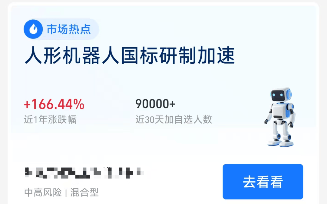 更令人难受的是,基金宣发渠道会刻意模糊历史收益率和未来收益率,这样使得基金好卖, 进一步加剧了基民的追高。下面这张图是我打开某基金销售页面随手截的,可以很明显的看出他在推荐一只机器人风格偏好的基金,过去一年收益率是166.44%。但是大家要是看过我文章的知道,实际上这个板块的估值水平已经接近历史极值了,这种情况继续追高实际上是很危险的行为。