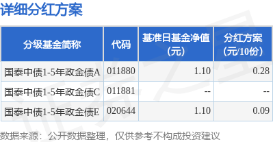 证券之星消息,12月8日发布《国泰中债1-5年政策性金融债指数证券投资基金分红公告》。本次分红为2025年度第一次分红。。公告显示,本次分红的收益分配基准日为12月12日,详细分红方案如下: