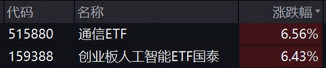 截至午盘收盘,沪指涨0.62%,深成指涨1.55%,创业板指涨3.02%。今日海外算力强势,通信ETF午盘收涨6.56%,创业板人工智能ETF收涨6.43%。