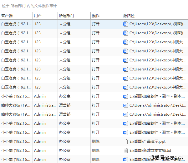 (5)文件操作记录:详细记录谁、在什么时候、对哪些加密文件做了什么操作(打开、编辑、复制、删除等),形成完整的操作日志,方便事后审计和追溯。