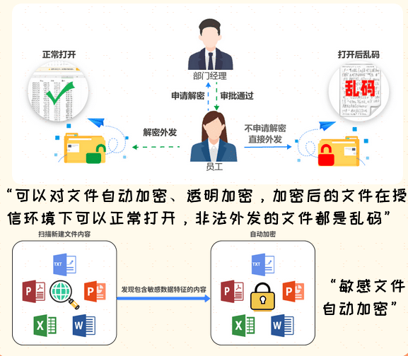 但如果想通过QQ、网盘、或者U盘拷走,文件离开公司授权环境,拿到别处就打不开了。