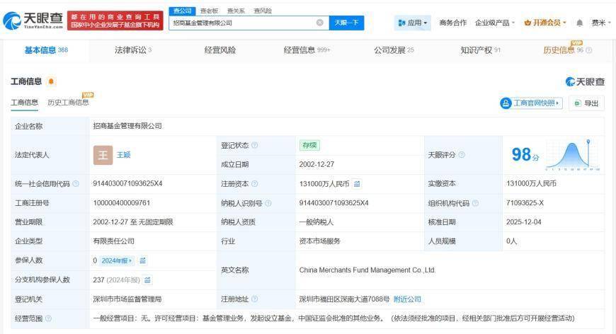据媒体报道,此前,招商基金发布高级管理人员变更公告称,王颖自2025年11月27日起任招商基金董事长,公司总经理钟文岳不再代任董事长职务。