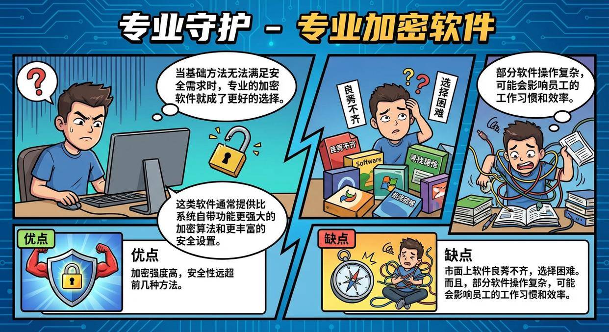 当基础方法无法满足安全需求时,专业的加密软件就成了更好的选择。 这类软件通常提供比系统自带功能更强大的加密算法和更丰富的安全设置。
