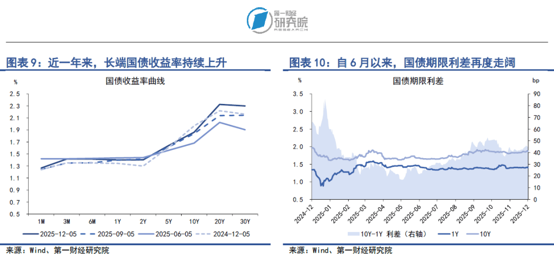 在12月1日至12月5日当周,各期限国债收益率普遍上升。从短端来看,3月期、6月期以及1年期国债收益率分别上升2.95BP、0.69BP和0.23BP。从中长端来看,5年期、10年期以及30年期国债收益率分别上升1.28BP、1.2BP和5.42BP。