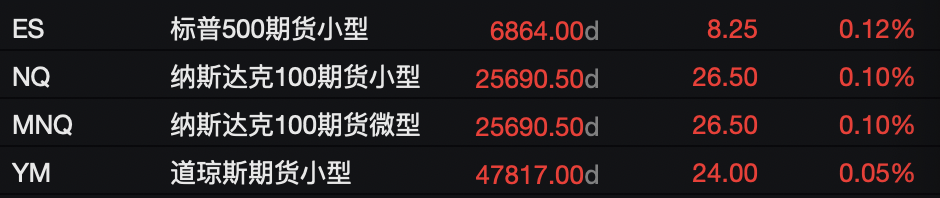 - 美股指期货集体上扬,标普500期货指数涨超0.1%,纳斯达克100期货涨0.1%,道琼斯期货涨0.05%。