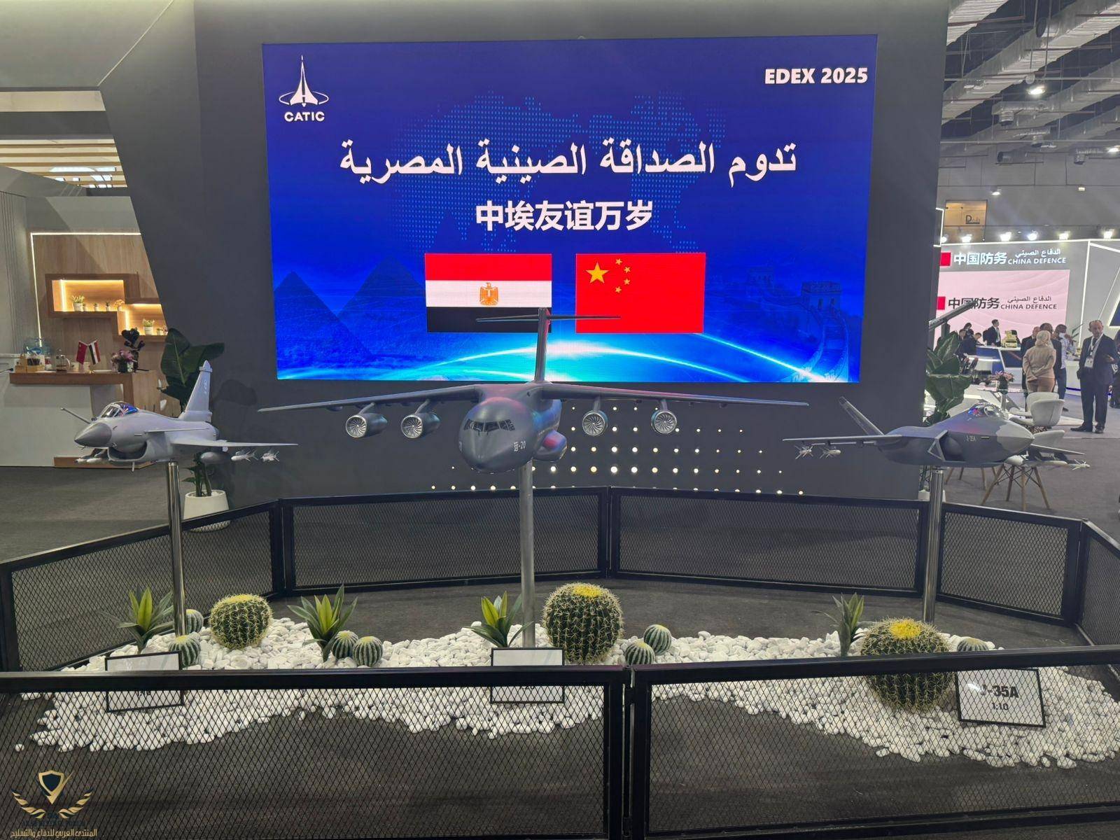 埃及防务展上,中方主展台展出的歼-10,歼-35,运-20
