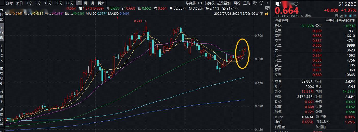 无惧市场盘整回调,荟聚电子板块核心龙头的电子ETF(515260)逆市活跃,场内价格一度涨超1.8%,收涨1.37%,成功斩获日线4连阳,收复60日均线。