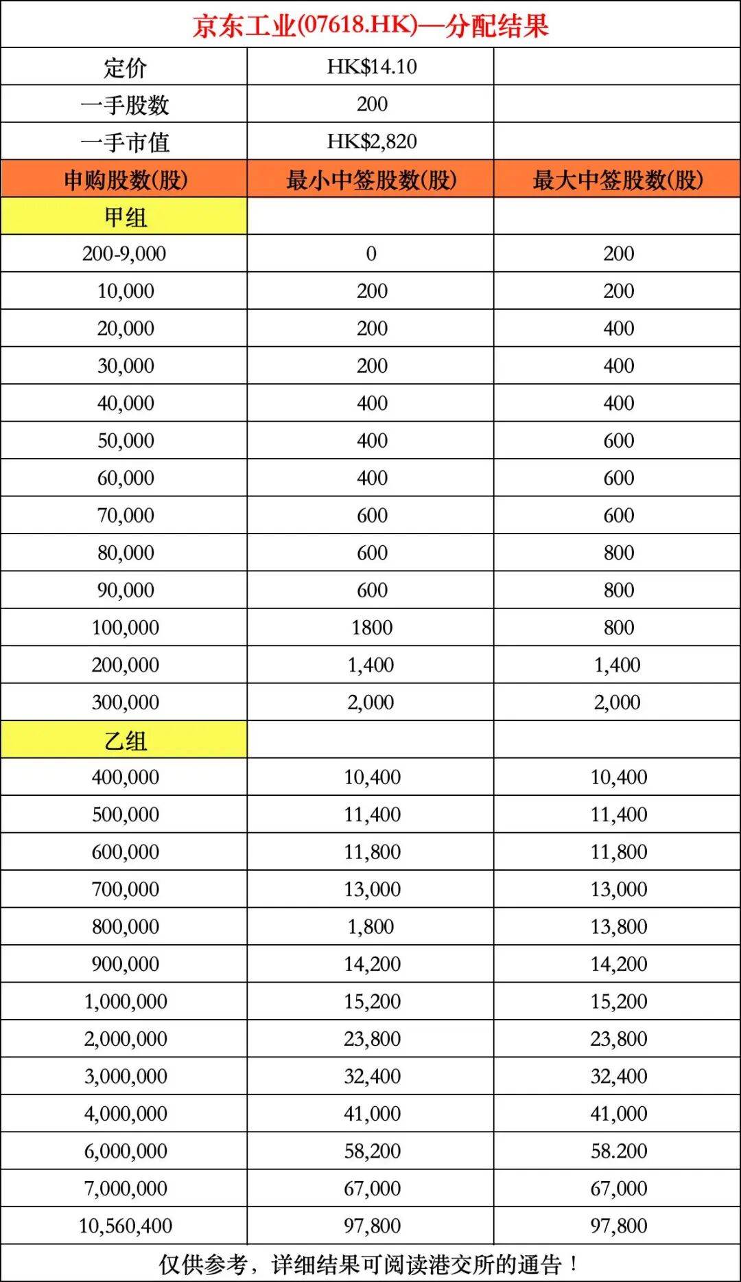 京东工业以招股价12.7~15.5港元的中间定价14.1港元,一手市值2820港元。甲组申购50手稳中一手,甲尾中签10手,乙头中签52手,货值14.7万。